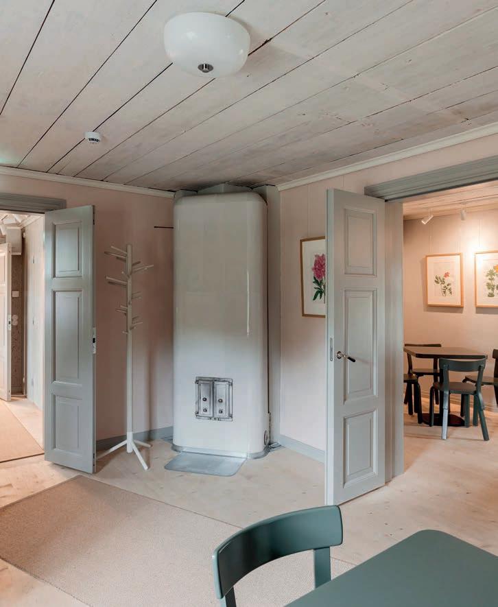 Painovoimaisen ilmanvaihtoratkaisun ansiosta huonetilat pystyttiin palauttamaan alkuperäisen korkeuteen ja muotoon. Päärakennuksen ullakon koneellinen ilmanvaihto- ja muu tekniikka saatiin sovitettua osaksi sisustusta integroimalla se kiintokalusteeseen. Jäähdytystä hoitavat puhallinkonvektorit sovitettiin luontevaksi osaksi interiööriä ikkunapenkkien alle suojasäleikköjen taakse. Painovoimaisen ilmanvaihtoratkaisun ansiosta myös Punaisen huvilan tilat säilyivät muodoltaan eheinä.