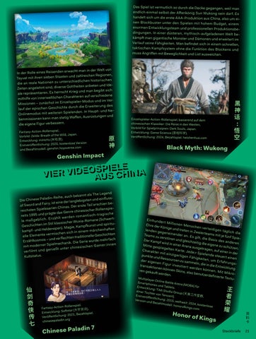 让我们一起召唤这个游戏与想象之境吧。中德两国对“玩” 这个概念的理解完全不同:在严谨的德语中,抛开席勒不谈, “游戏”大多局限于孩童领域,而中文里的“玩”常被译 为“amüsieren ”(娱乐消遣),它在中国文化中甚至有着更为 丰富的内涵。中国人将各类休闲活动都称为“玩”(如“出去玩 儿”),其中就包括体育运动、桌游棋牌、角色扮演乃至电子竞 技,还有股票市场等。这就涉及科技、经济、文化、社会乃至心 理学等话题。本刊一方面聚焦视频游戏,另一方面也关注被认 定为正式体育项目且有望进入奥运赛事的职业电竞。