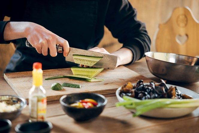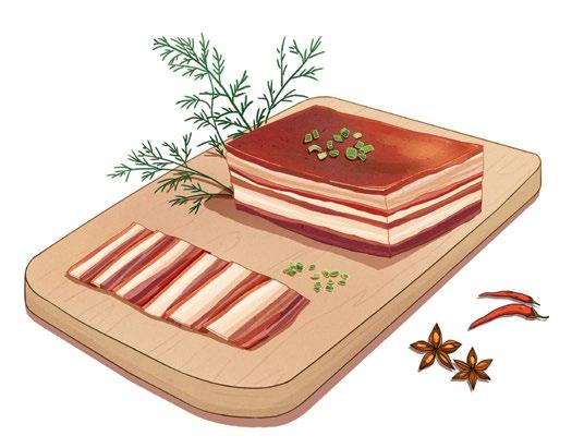 Die 496 Seiten des chiliroten Kochbuchs bilden die immense Vielfalt an Rezepten unterteilt nach Rubriken wie »Kalte Speisen«, »Fleisch«, »Tofu«, »Gemüse«, »Suppen«, »Hot Pot« oder »Würzmittel und Brühen« ab. Das Nachkochen fällt dabei nicht schwer – zum einen, weil die Grundausstattung der Sichuaner Speisekammer, der ein eigenes Kapitel gewidmet ist, sowie viele andere Zutaten in jedem Asien-Laden zu finden sind. Zum anderen, weil neben der Geschich te der Küche Sichuans auch die Menüplanung, die 23 Aromen Sichuans und die 56 Garmethoden Sichuans leicht verständlich erklärt werden. Wer außerdem in Zukunft auch auf Chinesisch übers Kochen und die Sichuaner Küche fachsimpeln möchte, wird sich über das Glossar chinesischer Begriffe freuen.