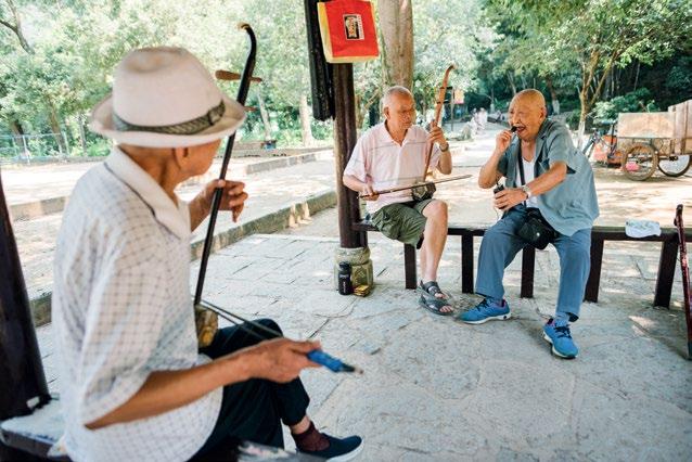 Spotlight: Das rockt! Guqin und Gitarre, Suona und Synthesizer… 聚光灯: 摇滚起来!古琴、吉他、唢呐与合成器…… Über Streicher in Rock und Pop wundert sich niemand mehr. Auch in China integrieren viele Bands traditionelle Instrumente und Gesangsformen in ihre Songs. 弹拨乐器也运用在流行乐、摇滚音乐中,这早已不是 什么新鲜事儿了。如今在中国也出现了不少乐队,将 传统的中国乐器和演唱方式和谐融入他们的歌曲与音 乐之中。
