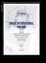 Magazyn Forbes przyznał firmie DIMAX International Poland Sp. z o.o. tytuł laureata Diamentów Forbesa 2025 jako jednej z najszybciej rozwijających się firm, która obrała właściwą strategię i rozwija się w bardzo dynamicznym tempie. Strategia spółki koncentruje się na tworzeniu szerokiej gamy produktów z naciskiem na nowoczesne technologie i rozwój nowych, ekskluzywnych rozwiązań. Opiera się na kompetentnej strukturze organizacyjnej i skutecznej współpracy wewnętrznej oraz zewnętrznej, co pozwoliło firmie osiągnąć tak znaczący sukces.
