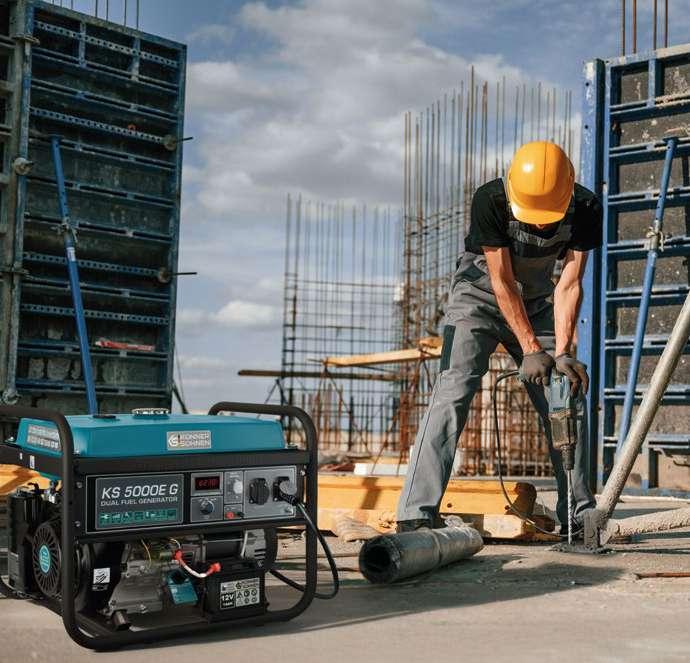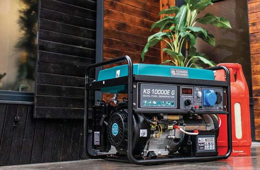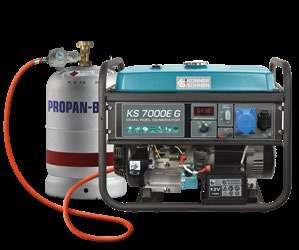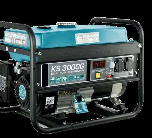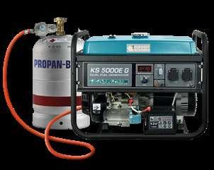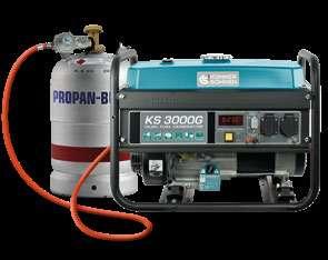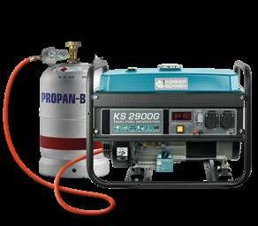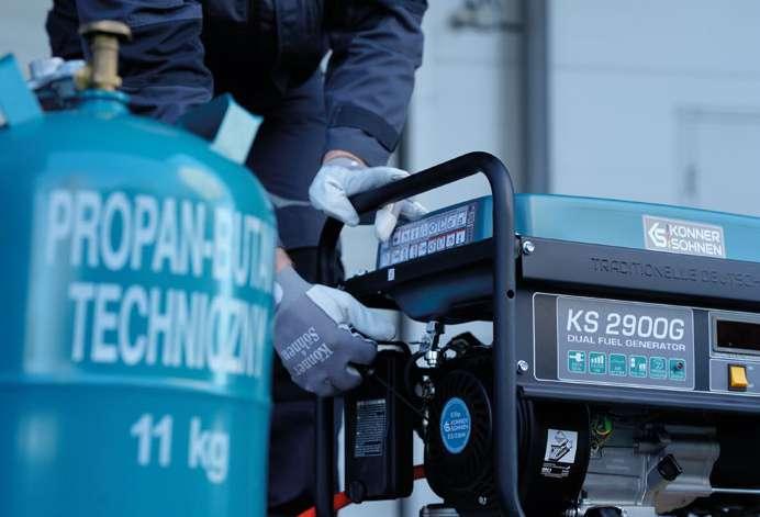 "DUAL FUEL" – Dwupaliwowe modele K&S pracują zarówno na benzynie, jak i na gazie (propan-butan). Gaz jest czystszym paliwem, który redukuje emisję szkodliwych substancji do atmosfery, czyniąc pracę generatora bardziej ekologiczną.