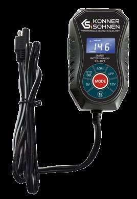 Prosta w użyciu i kompaktowa ładowarka wyposażona w złącze SAE, przeznaczona do ładowania akumulatorów LiFePO4, AGM oraz kwasowo-ołowiowych (Lead-acid) i żelowych o napięciu 6 V i 12 V, a także akumulatorów LiFePO4 o napięciu znamionowym 12,8 V (4 ogniwa). Takie akumulatory stosowane są w samochodach, lekkich pojazdach dostawczych, traktorach, generatorach, przyczepach kempingowych, domach mobilnych, łodziach i innych urządzeniach o pojemności do 45 Ah.