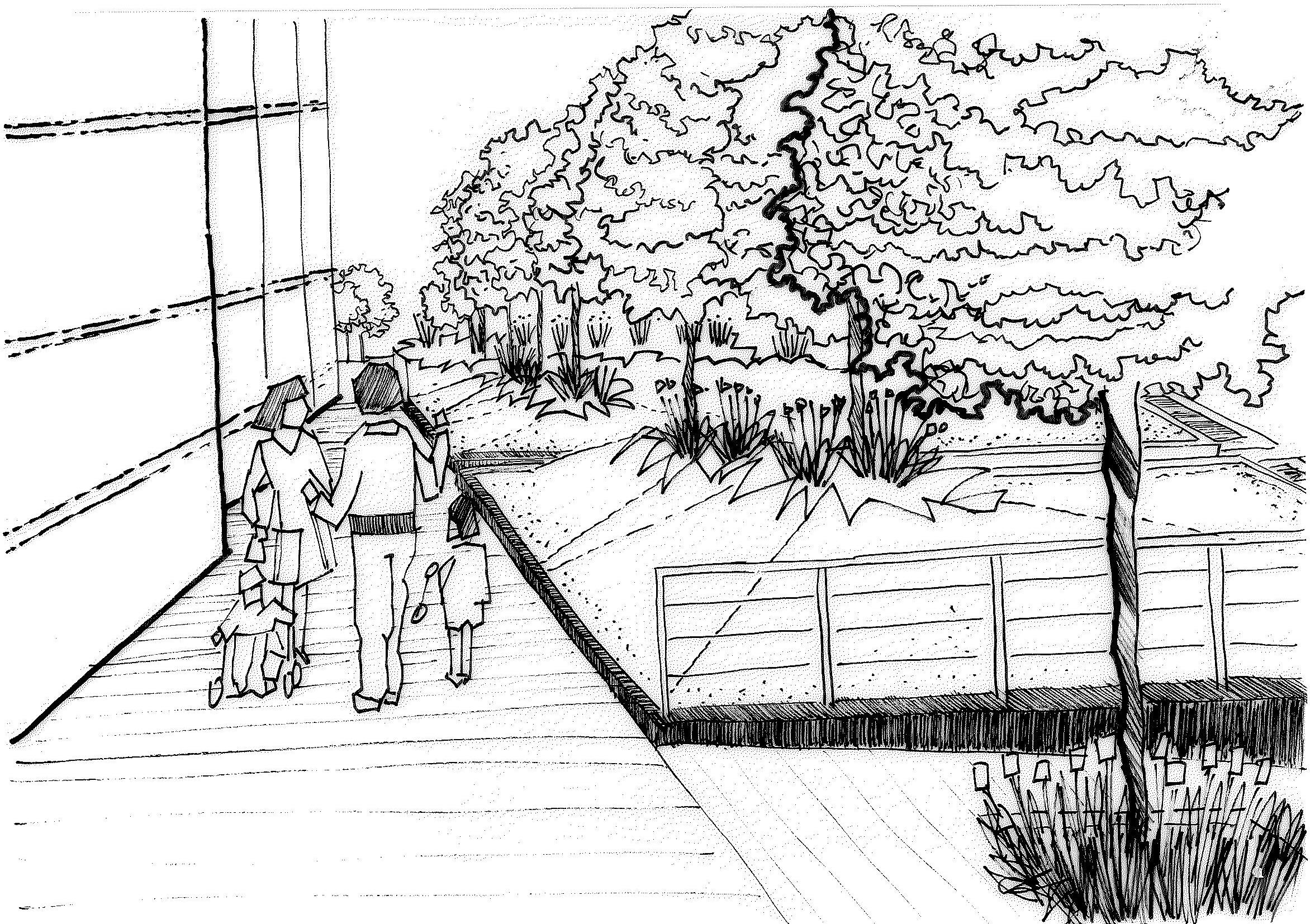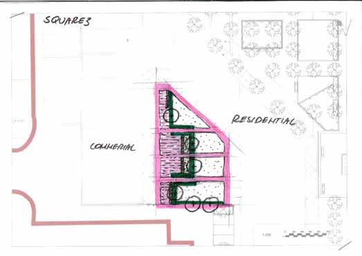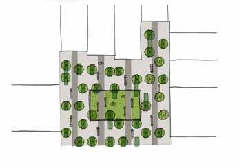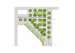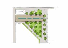 dining terrace will support spill out space from the internal dining hall for staff and visitors. Suitability to hard landscape environments will be an important consideration for tree species selections. These spaces include: