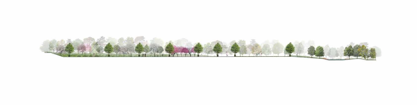• Wet evergreen forest: Inspired by the mangrove forests the wet evergreen forest edge will act as a sponge helping to absorb excess water and help to control water as it flows through the central ribbon of the site.