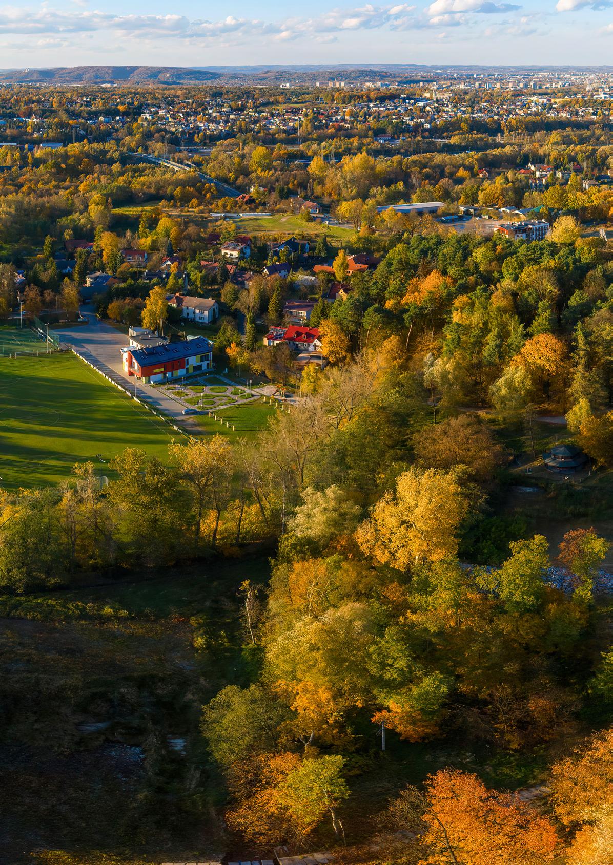Część miasta i jego zachodnia granica to już Bielańsko-Tyniecki Park Krajobrazowy, wschodnia część Krakowa zaś