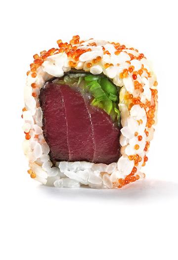 spicy tuna supreme tuna, vårløk, spicysauce, toppet m . tobikorogn 8 stk 179,-