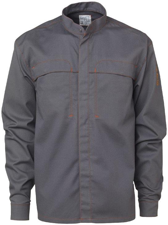 Flammebeskyttende skjorte som lukkes med skjulte metalltrykknapper. Regulerbar ermevidde med metalltrykknapper. Lenger bak for maksimal beskyttelse og komfort. Hempe bak i nakken. Ventilasjon i ryggen for maksimal komfort. Brystlommer med klaffer, lukkes med skjulte metalltrykknapper. Klaffdesignet gjør det enkelt å komme ned i lommene.