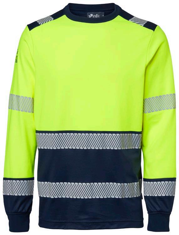 Flammehemmende genser fra Fristads. Ribbekant i hals, midje og armslutt. Forsterkning på albuer og panel uten refleks i sidene for økt bevegelsesfrihet. Refleksene er påsydd med 2-nålssøm. Metallfri.
