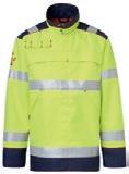 Flammebeskyttende skjorte som lukkes med skjulte metalltrykknapper. Regulerbar armvidde med metalltrykknapper. Lengre bak for maksimal beskyttelse og komfort. Hempe bak i nakken. Ventilasjon i ryggen for maksimal komfort. Brystlommer med klaffer, lukkes med skjulte metallknapper. Klaffdesignet gjør det enkelt å komme ned i lommene. Gule felter og reflekterende striper for bedre synlighet, for brukerens sikkerhet.