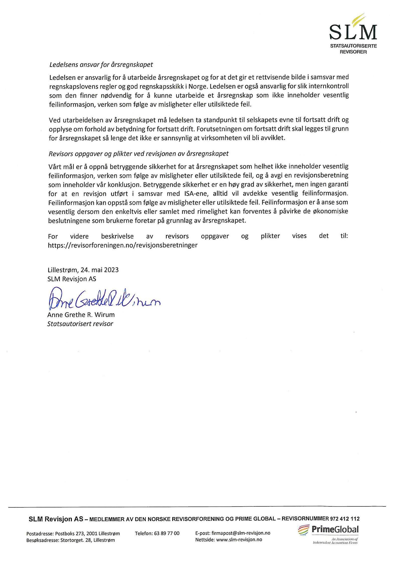 Årsregnskapet for 2022 er satt opp under forutsetning om fortsatt drift, og det bekreftes i samsvar med regnskapslovens § 3-3a at forutsetningen om fortsatt drift er til stede.