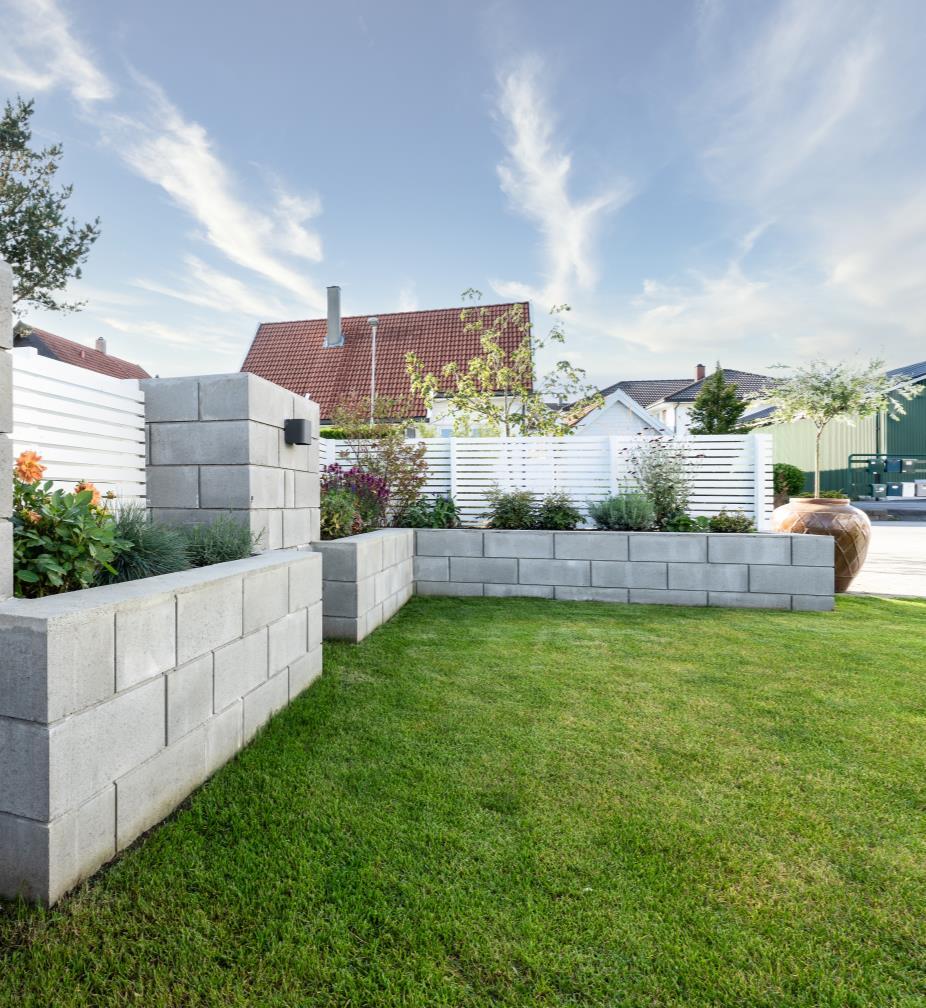 • Belegningsstein inntil muren som f.eks klippekant robot gressklipper.