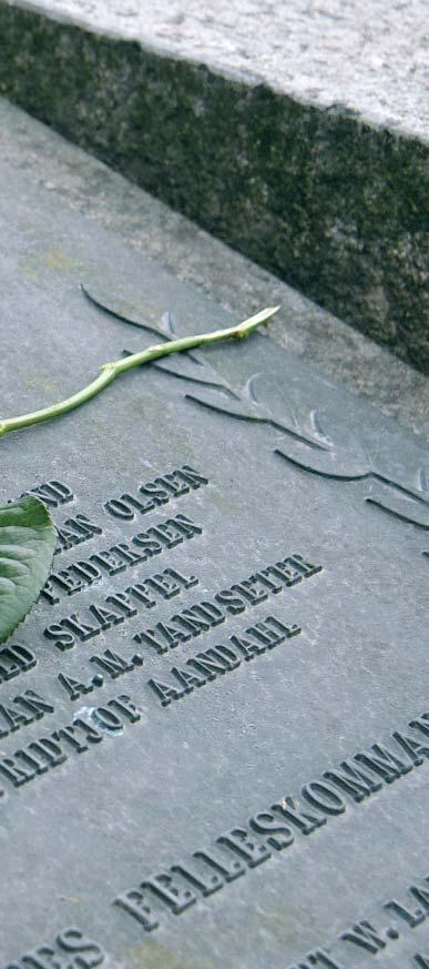 talte til diplomater og veteraner. Etter bekransning av de allierte gravene ledet en sekkepipeblåser de fremmøtte til de britiske krigsgravene. Her ble det lagt ned tre kranser, blant dem en fra oss. Elever fra Skøyen skole la ned en rose på hver grav.