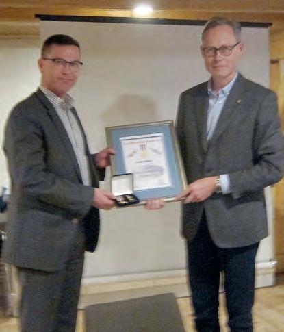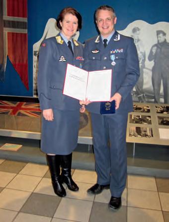Redaktør Luftled Svein Holtan mottar LMS hedertegn av leder LMS oberstløytnant Espen Gukild.