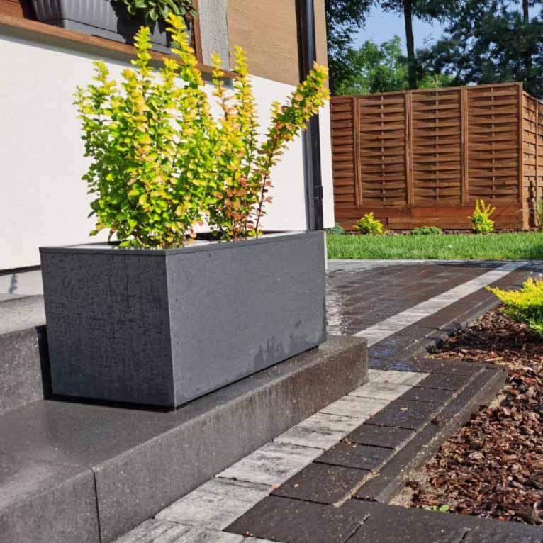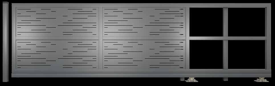 Nieskomplikowana forma oraz efektowny zabieg odwróconych profili wypełnienia sprawia, że model ten świetnie sprawdzi się w aranżacjach z użyciem słupów stalowych, jak również bardziej skomplikowanych projektów z zastosowaniem bloczków ogrodzeniowych.