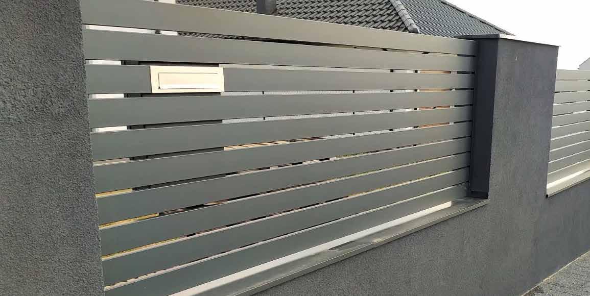 ● Ogrodzenia żaluzyjne – model PS004 z poziomym układem płaskich sztachet, nawiązujących wyglądem do tradycyjnych żaluzji okiennych, zapewniających prywatność i estetykę.