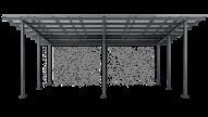 The construction of the carport is ready to add more modules. Each expansion increases the width of the structure by 3 m and has the same roof covering as the base module.
