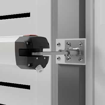 Rygiel do bramy uchylnej. Zapobiega otwarciu skrzydła bramy. Wyposażony dodatkowo w rozwiązania uniemożliwiające otwarcie rygla z zewnątrz przez osoby niepowołane.