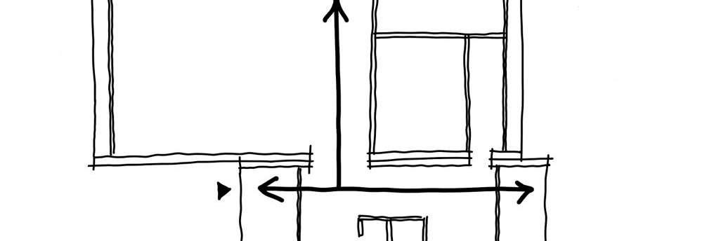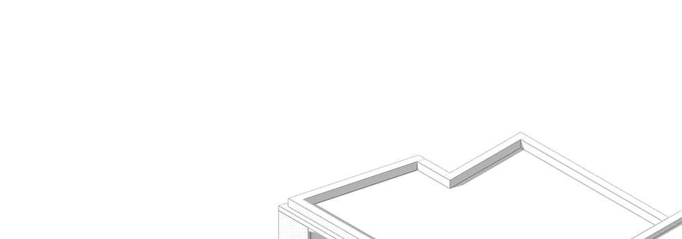 Objem budovy je založen na dvou polích «rovnoběžných» se směrem terénu. Hlavní vchod a vjezd do garáže jsou orientovány na sever.