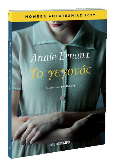 Τα βιβλία της ζωής μας metaixmio.gr ANNIE ERNAUX ΝΟΜΠΕΛ ΛΟΓΟΤΕΧΝΙΑΣ 2022 Φεμινιστικό είδωλο για γενιές, μια από τις πιο δυνατές και αντισυμβατικές φωνές της σύγχρονης γαλλικής λογοτεχνίας, απροκάλυπτα αυτοβιογραφική, η Ανί Ερνό και μόνο ένα βιβλίο να έγραφε, το συγκλονιστικό Το γεγονός, θα άξιζε να πάρει το Νόμπελ Λογοτεχνίας. ΠΑΡΉ ΣΠΊΝΟΥ, Η ΕΦΗΜΕΡΙΔΑ ΤΩΝ ΣΥΝΤΑΚΤΩΝ ΝΕΑ Β Ί ΒΛ Ί Α