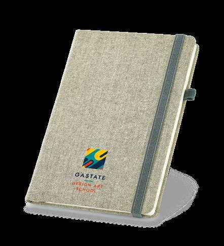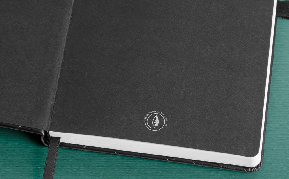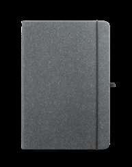 A5 notepad with rPET hardcover. This notepad has 192 lined ivory pages from a sustainable forest management, bookmark ribbon, elastic band and inner pocket.