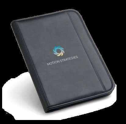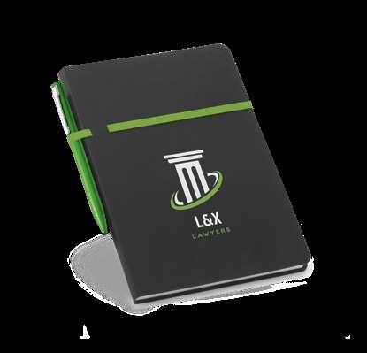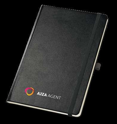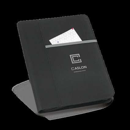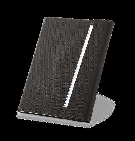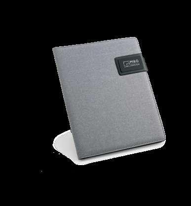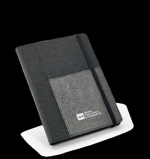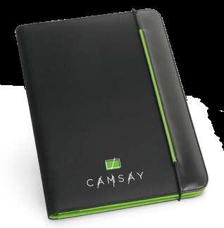 600D A4 folderwith elastic closure. The folder contains 20 lined sheets pad, 3 interior pockets and a pen holder (pen not included). 240 x 325 x 15 mm # LSR – 20 x 10 mm