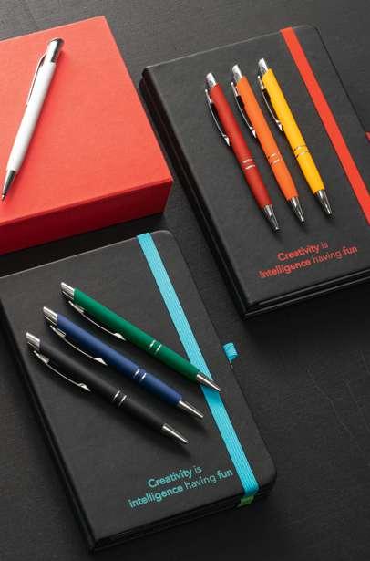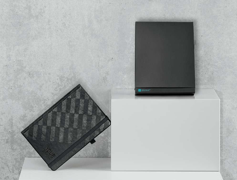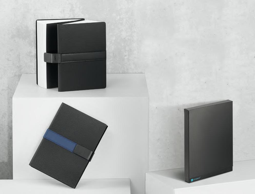 The DYNAMIC is an A5 notepad thougt and designed to be a functional and practical object with a touch of city elegance. It has two different writing notepads on each side that can be used and closed separately. It has a magnet closing system on the strap that goes around the notepad. The band has a different colour on each side, allowing its identification, giving a certain irreverence to the product. The exterior material is high quality imitation leather, textured and smooth. It has 256 pages with FSC certification, that are divided proportionally between plain and lined pages, identifiable by the outer banner. The DYNAMIC notepad is unique in its design but also in its functionality, where duality makes it a perfect object for every moment of everyday life. Notepad: 150 x 210 mm | Box: 200 x 30 x 265 mm # LSR – 35 x 10 mm