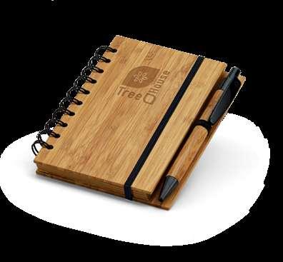 Bamboo hardcover spiral notepad, 140 lined recycled pages and pen holder (pen included).