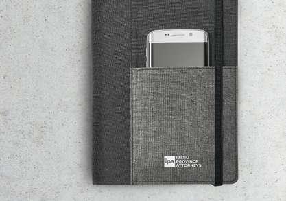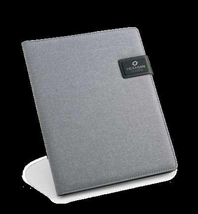 Microfiber and 210D A4 folder with a 20 lined sheets pad, card pockets, a cell phone compartment and a pen holder (pen not included). 240 x 315 x 15 mm # TRS – 200 x 200 mm