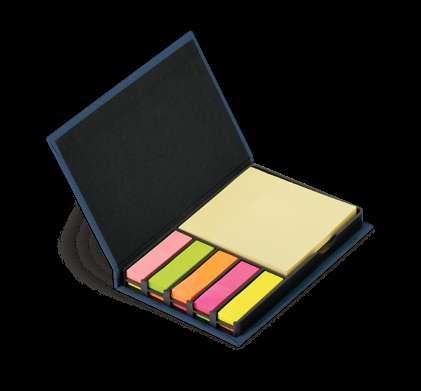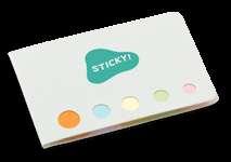 Coloured sticky notepad with 6 sets (25 sheets/each) and a notepad with 100 plain pages. Pen included.