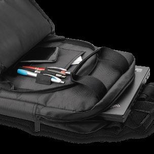 High density 900D and tarpaulin laptop backpack. Anti-theft system: main compartment with hidden zipper and back with 2 hidden pockets with metallic zippers, for greater security. Main padded and lined compartment, with 2 padded compartments for a laptop up to 15.6’’ and tablet up to 10.5’’. The backpack has several interior pockets, including the padded smartphone pocket, with access to the earphone outlet. Inside, it has cable management loops. On the side, the backpack has an outer zipped pocket and access to 1 inner pocket. The inner pocket is ideal for carrying a portable battery, making it easy to charge various mobile devices. Padded straps and back, with padded support system for the back, and 1 zipped pocket. Accessories not included.