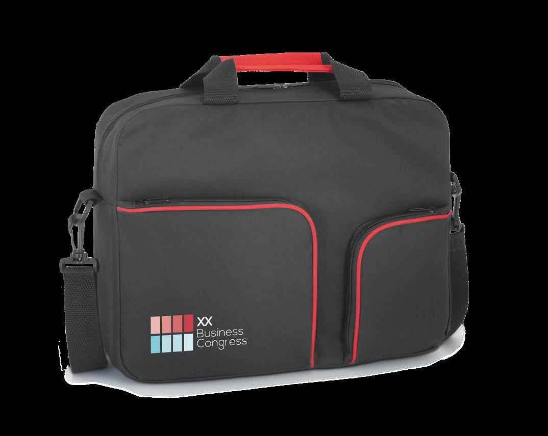 600D conference bag with pen holder (pen not included) and zipper, ideal for carrying documents.