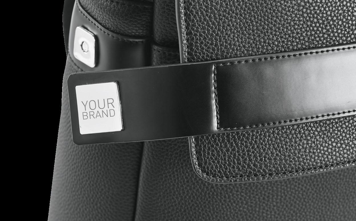 Travel trolley in imitation leather and 1680D with rigid case. Lined and padded interior compartment for laptop up to 15.6’’. Identification tag on the back. Contains an extensible spring-loaded aluminium handle. Includes a removable magnetic metal plate for easy customisation. The trolley has a capacity up to 20 L and weighs 2.75 kg. Metal plate custamisable with laser supplied seperately. 430 x 370 x 180 mm | Plate: 50 x 20 mm