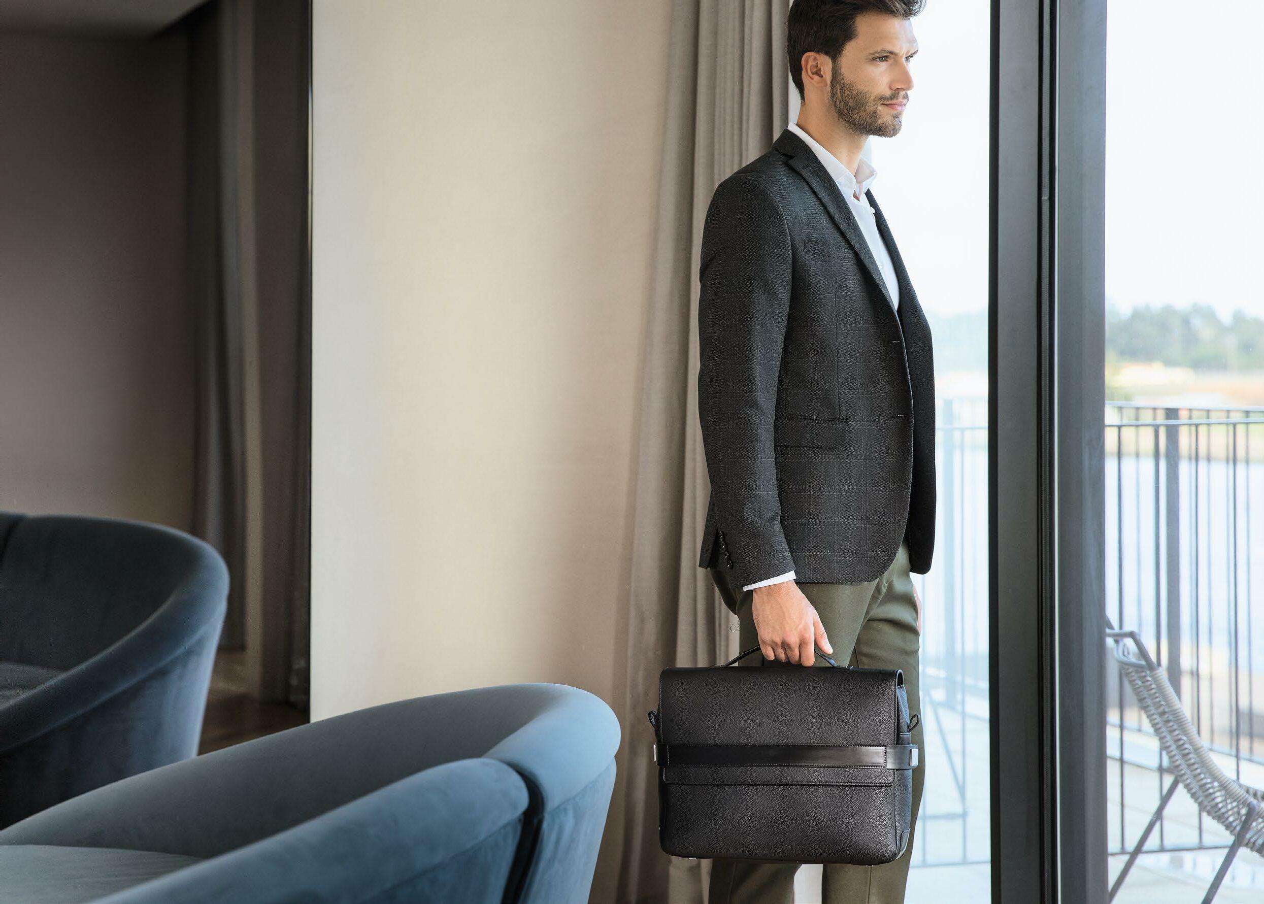 The EMPIRE II is a classic and sophisticated high quality textured polyfleece briefcase. It has 2 outer pockets with hidden zippers, and several inner pockets in the front, that facilitate storage. The main compartment closes with a zipper and contains 2 padded dividers, compatible with a laptop up to 15.6” and a tablet up to 10”. Its design, like all the products in this collection, was thought to the smallest detail which makes the EMPIRE II briefcase the ideal ally for everyday life, which doesn’t go unnoticed. The versatility that is shown in the different forms of transport, is also noticeable in its trolley strap. The briefcase is supplied in a non-woven bag.