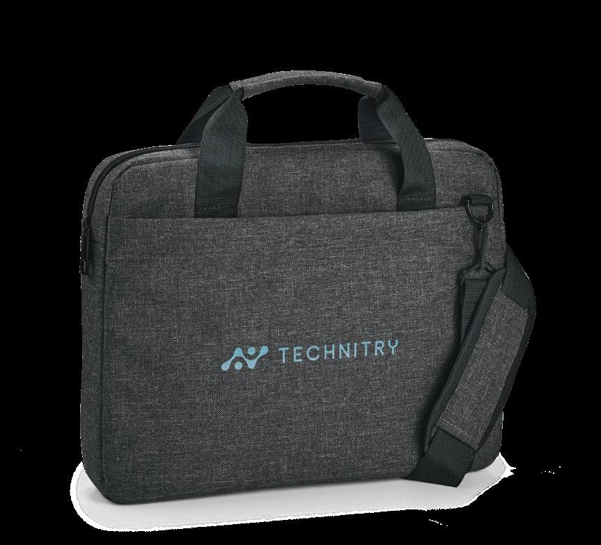 600D laptop bag, up to 15.6’’ with lined and padded interior. It has 2 front pockets and adjustable shoulder strap. The bag has a pen holder (pen not included).
