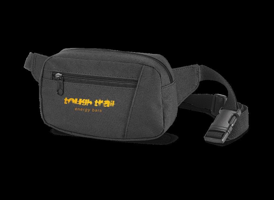 Waist pouch in high density 600D. Main compartment and a zipper on the back of the pouch. This waist pouch has a webbing adjustable strap.
