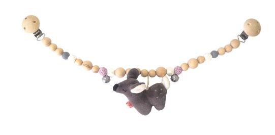 Purchase Unit: 3 Wooden & Silicone Beads With Rattle and/or Bell Wooden Clips 41cm