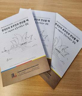 ‘한국인이 호주인과 만났을 때-새 이민자의 호주 사회로의 융합’ 책자 표지. 삽화는 프렌시스 리(Francis Lee) 호주 국민훈장(OAM) 수훈자께서 직접 그렸다.