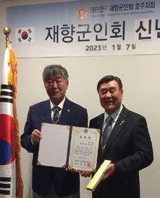 심양면으로 수고해주신 조성권 재향군인 회 부회장과 춘파장학회 백승국 회장에 게 감사패와 상품 (재향군인회 시계)을 전 달하였다. 방승일회장은 신년사를 통해 대한민국