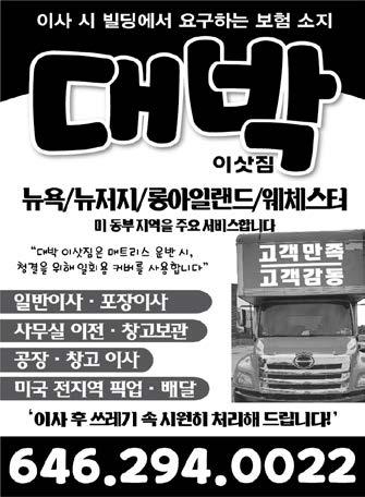 MURPHY S MOTORS 모든 차종 싼 차부터 비싼 차까지 모두 사입합니다. SUV, VANPICKUP TRUCK DUMP TRUCK 등 NJ 201.844.4535 NY 917.977.1489 김 훈 제 Hoon Je Kim 발행인 : 이명석 T. 718-359-0700 Email. findallny@gmail.com 뉴저지 지국장 : 박정태 201-937-3289 2024년 5월 18일 (토) SAT. 245 4St #1E Passaic NJ 07055