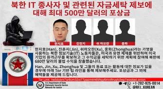 주하며, 재택근무하는 소프트웨어·앱 개발자인 것처럼 위장했다. 하지만 미 국무부는 이들이 실 제로는 탄도미사일 개발 등을 관장하는 북한 군