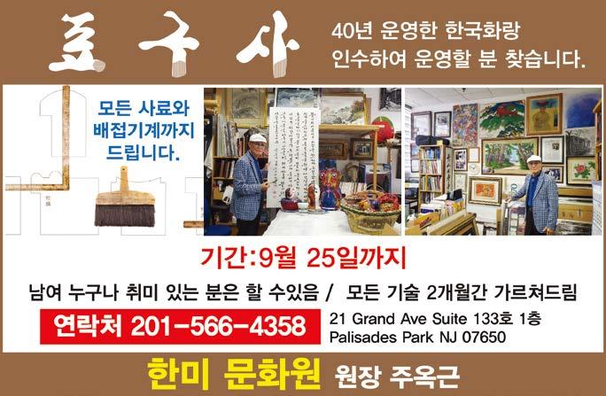 뉴저지 지국장 박정태 : 201-937-3289 2023년 9월 23일 (토) SAT. 245 4St #1E Passaic NJ 07055