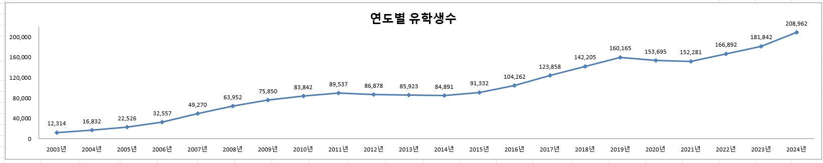한국교육개발원, “2024년도 국내 고등교육기관 외국인 유학생 현황” , https://www.moe.go.kr/boardCnts/viewRenew.do?boardID=350&lev=0&s tatusYN=W&s=moe&m=0309&opType=N&boardSeq=101034 (2025. 2. 19.).