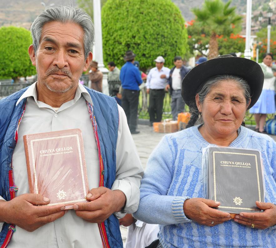 여 자신들의 언어로 처음 번역된 성경을 들고 기쁨