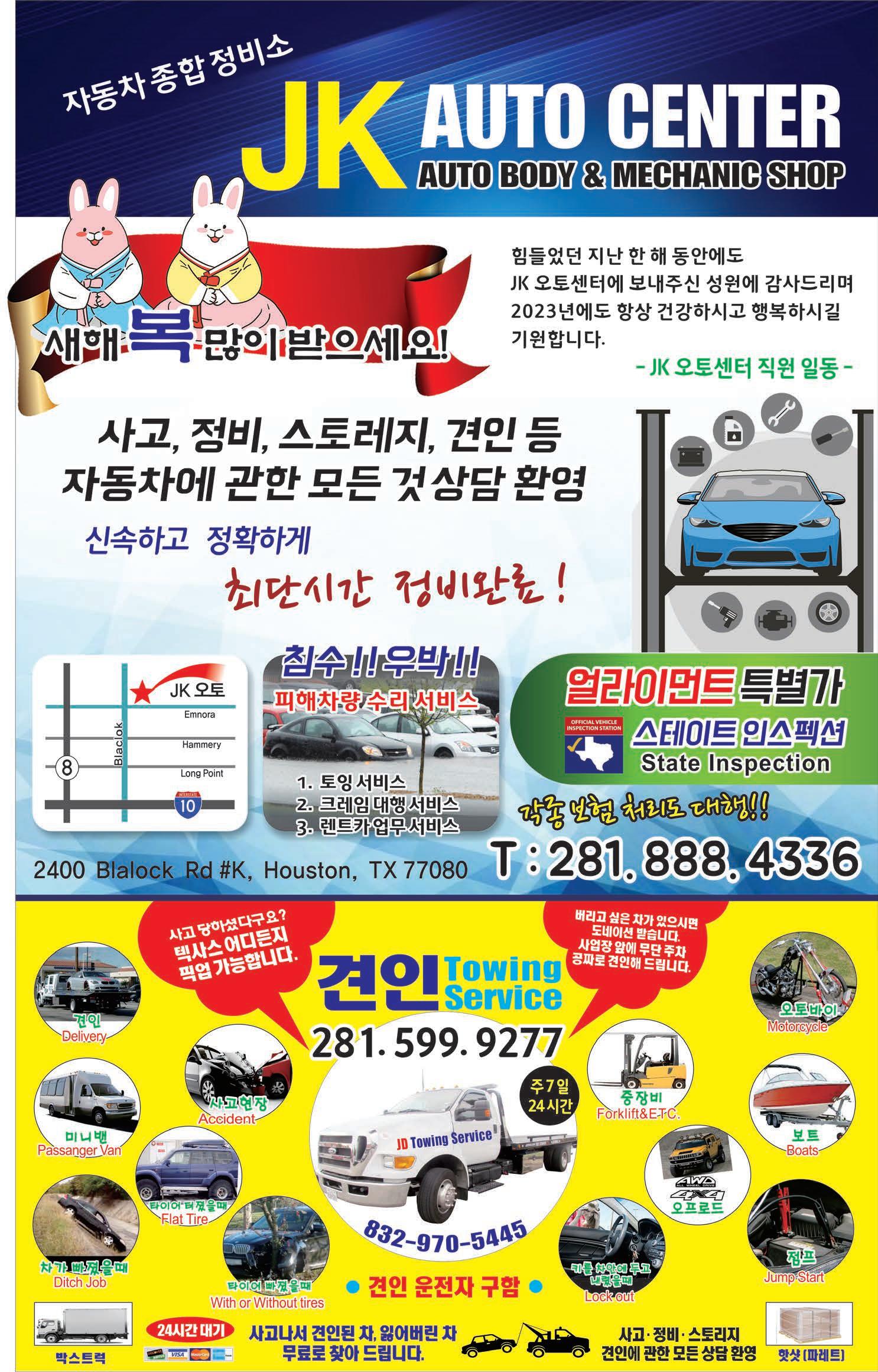 종교 칼럼 부족해도… 예배의 자리만은 지키자 주일 예배: 오후 1시 30분 담 임 목사: 최 은 택 Lead Pastor: Eunteak Tony Choi 휄 로십 커 뮤니 티 교회 FELLOWSHIP COMMUNITY CHURCH Cell: 808-989-7541 Home Page: http://www.fellowshipccs.com/ E-mail: eunchoifcc@gmail.com 2600 Roy Richard Dr. 2nd FL. Schertz TX. 78154 수요 QT: 오전 10시 금요 기도회: 오후 1시 (장소: Muscat Way-전화 문의) 2023년 표어: 주님의 날개 아래 비상하는 교회 이사야 40장 31절 <연합뉴스> 美, 전산 오작동 한때 항공기 운항 중단… 2만편 이상 지연 전산오작동으로 미국 전역의 국 내선 항공기 운항이 11일 오전 한 때 전면 중단됐다. 백악관은 현재까지 사이버 공격 에 대한 증거는 없다면서 조 바이 든 대통령이 이번 원인에 대한 총 체적인 조사를 지시했다고 밝혔다. 미 연방항공청(FAA)은 이날 아침 전산망 오작동을