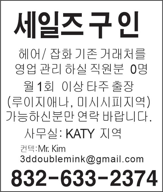 -여자분 룸메이트/메디컬센타(12월부터 4개월간, 가구/ 유틸리티포함---------------(703)231-8985 -룸메이트 /방2개 세놓습니다 --------------------------(346)404-9132 -방세놓음, H마트 5분거리 위치 --------------------------(713)820-5167