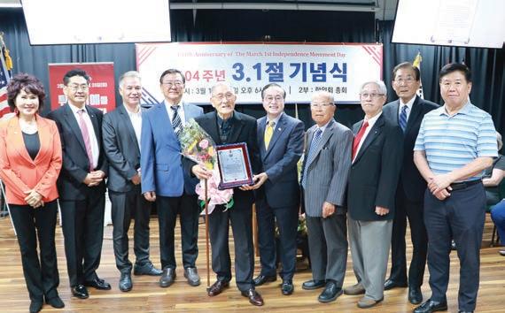 가 해결될 수 있는 미래 전망을 제 시해주었다고 해석했다. 그리고 대 한민국이 국제사회에서 자유와 번 영의 국제연대를 위해 미국과 함께 선도해가고, 한반도가 처해있는 안 보적 위기 상황과 21세기 패권경쟁 속에서 한·미·일의 건강한 안보 삼 각체제 구축이 자유와 국제연대를 확장하는 길임을 강조했다. 영어권 참석자들을 위해 윤건치 한인회장은 영어로 3.1 독립선언문 의 의미를 설명하고, 한미동맹 70 주년을 맞아 급격한 국제정세의