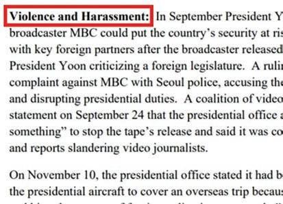 단의 소제목을 ‘폭력과 괴롭힘 (Violence and Harassment)’으로