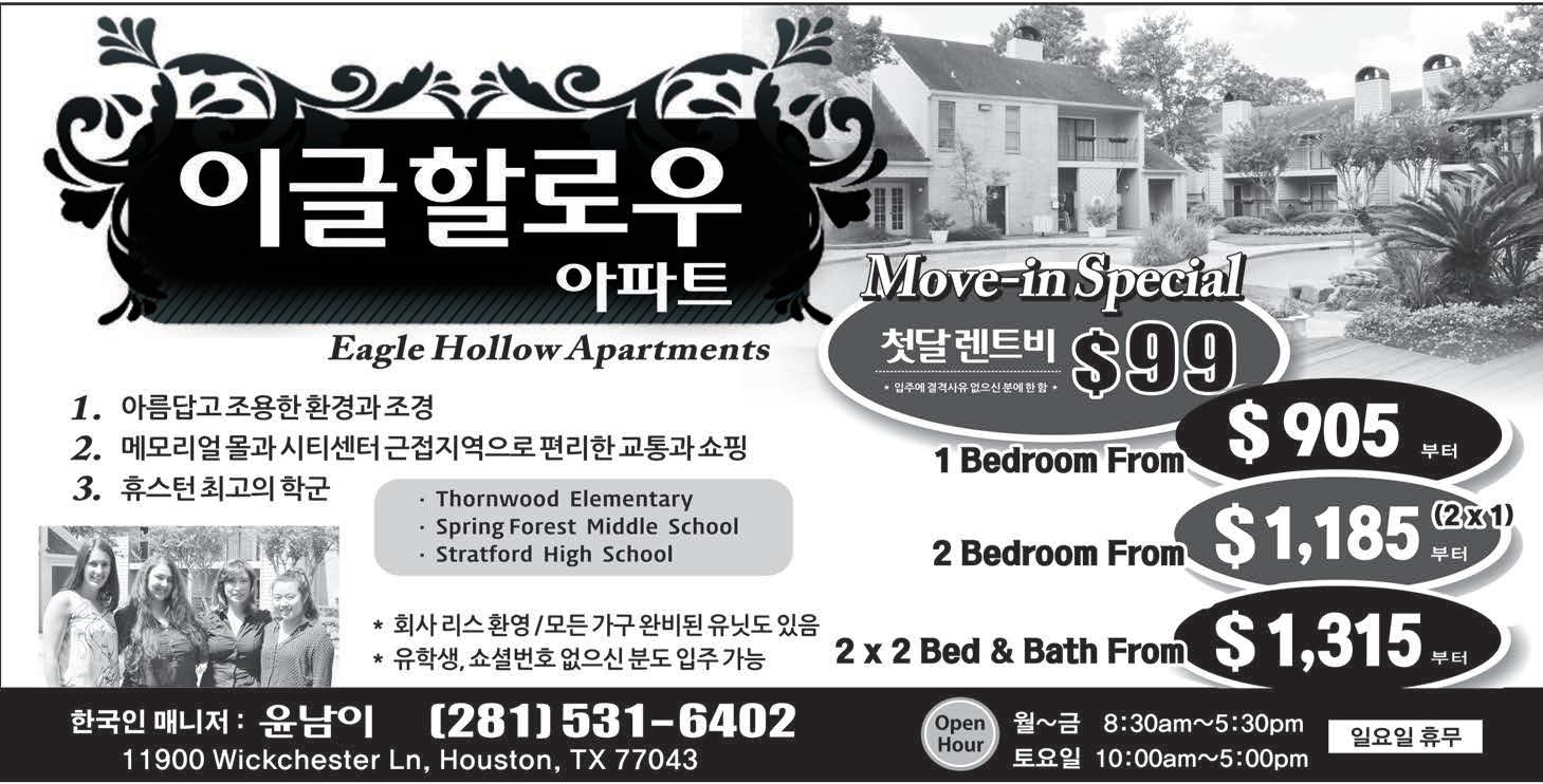 -콘도렌트 / 2Bed / H마트 건너편 -------------------------(281)702-4581