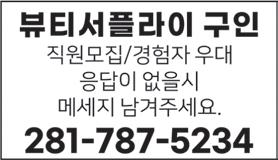 -뷰티서플라이 장비(선반, 마네킹, 훅 등등) -------------------------(832)725-4440 -스시바쇼케이스/활어수족관 싸게 파실 분 연락주세요 -------------------------(248)971-4419 -나비(NaBi) 플로리스트 / 오스틴 -------------------------(512)383-5140 -묘지매매 원합니다(메모리얼 묘지/ I-10 & 엘드리지) -------------------------(832)741-2055 -묘지 3기 매매 가격 협의 가능 (문자요망) -------------------------(281)788-9102 -시온 크리스챤 교회 반주자 구함 -----------------(메세지) (713)298-9948 JUN